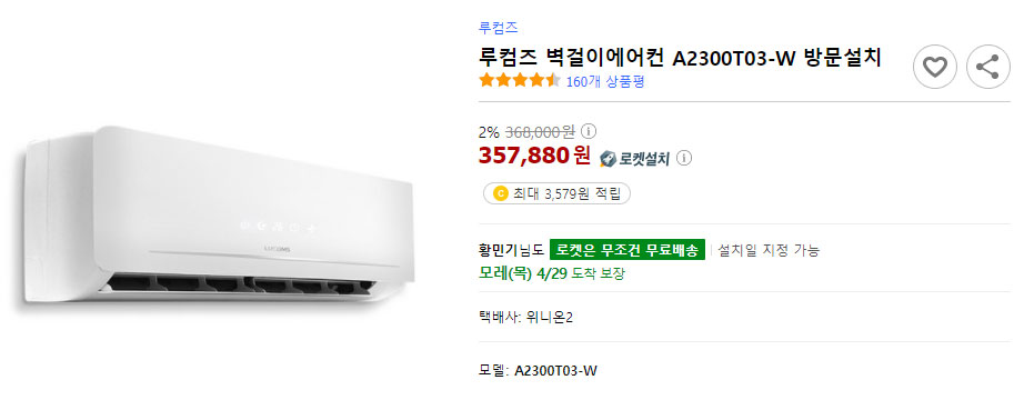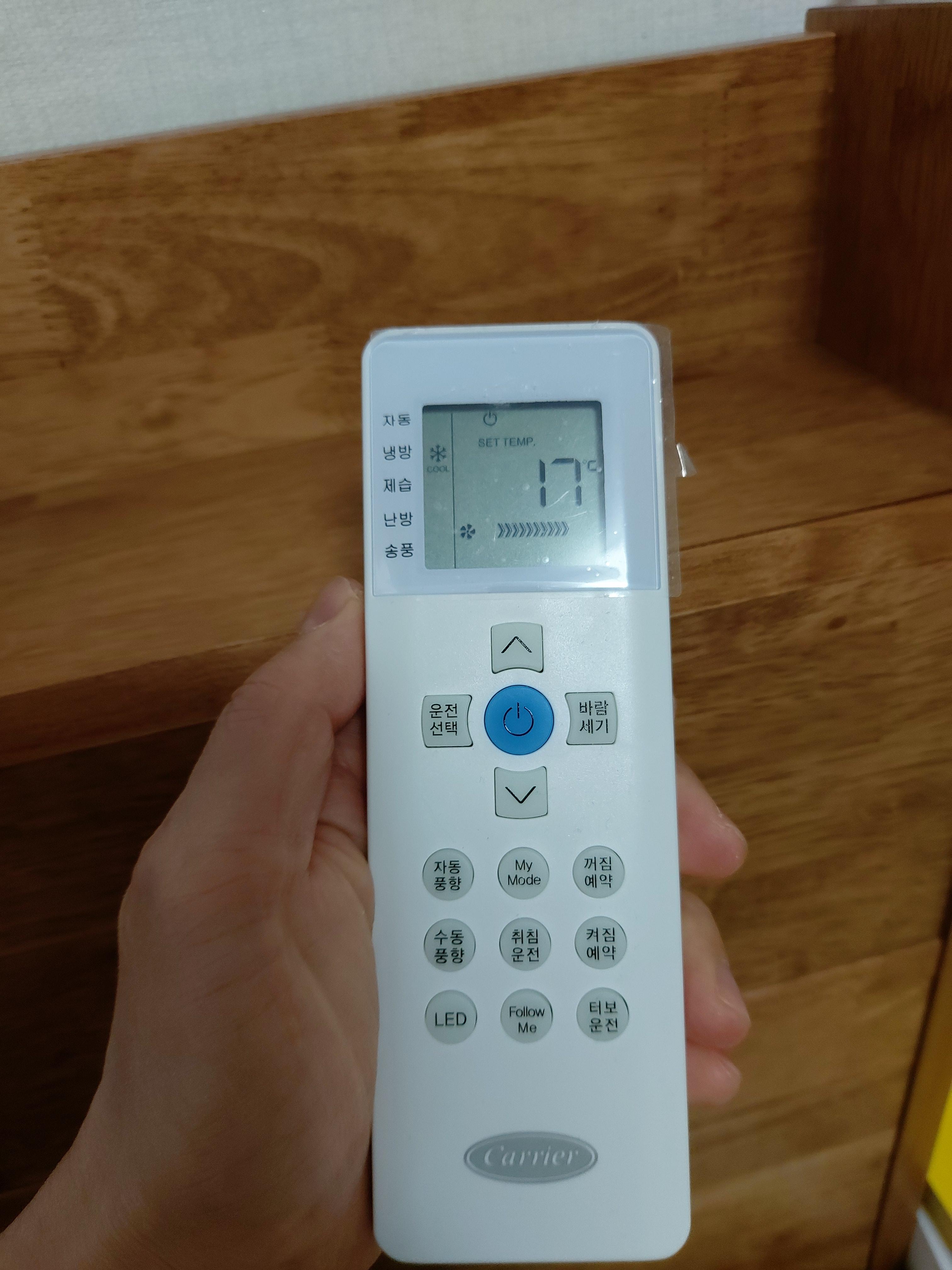 제가 설치한 5등급 케리어 벽걸이 에어컨을 추천하고