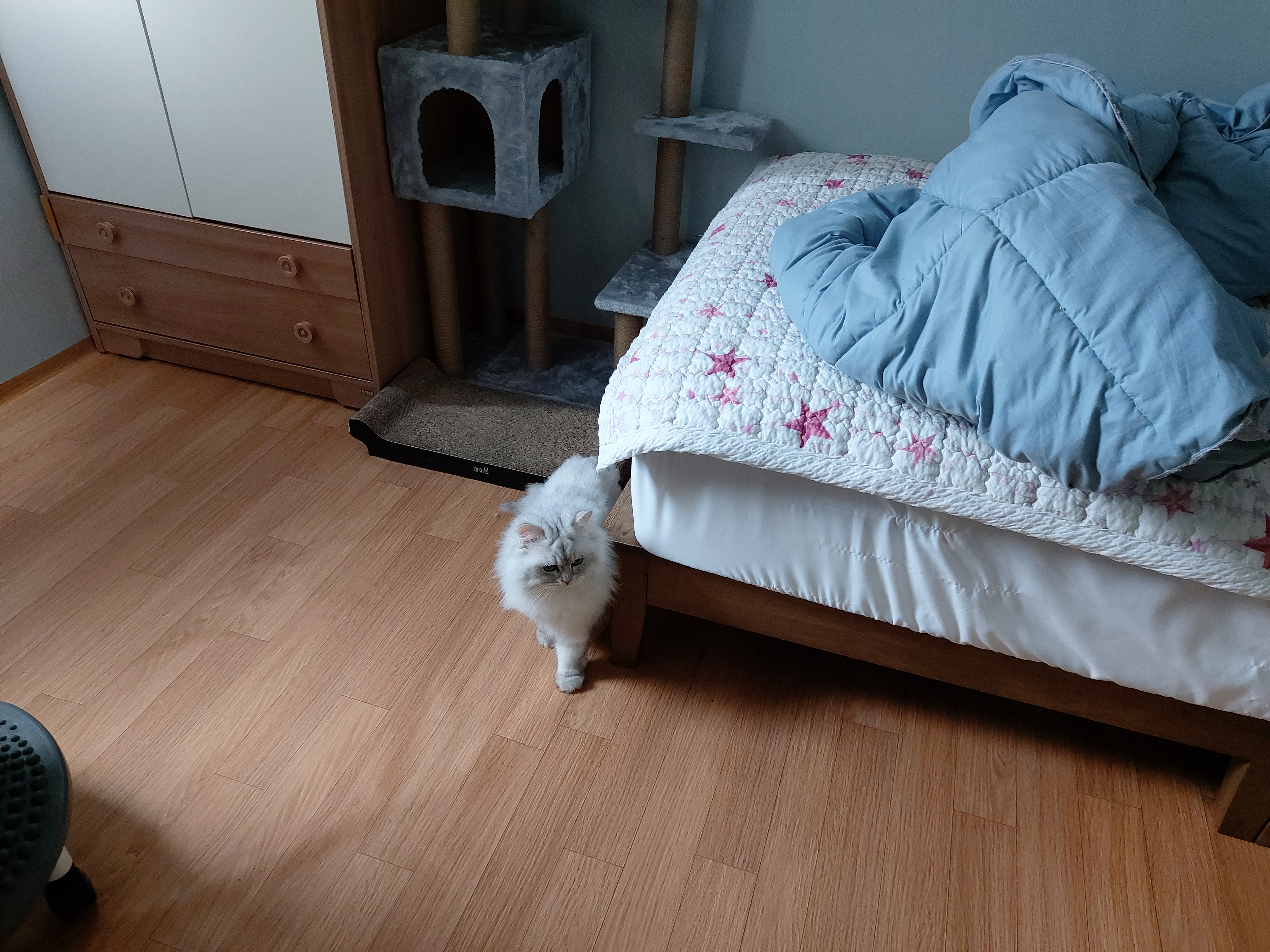 설치 기사님이 오시자 숨었다가 가시고 나서야 나오는 울집 야옹이 ♡ 이사하면서 오래 사용한 제품을