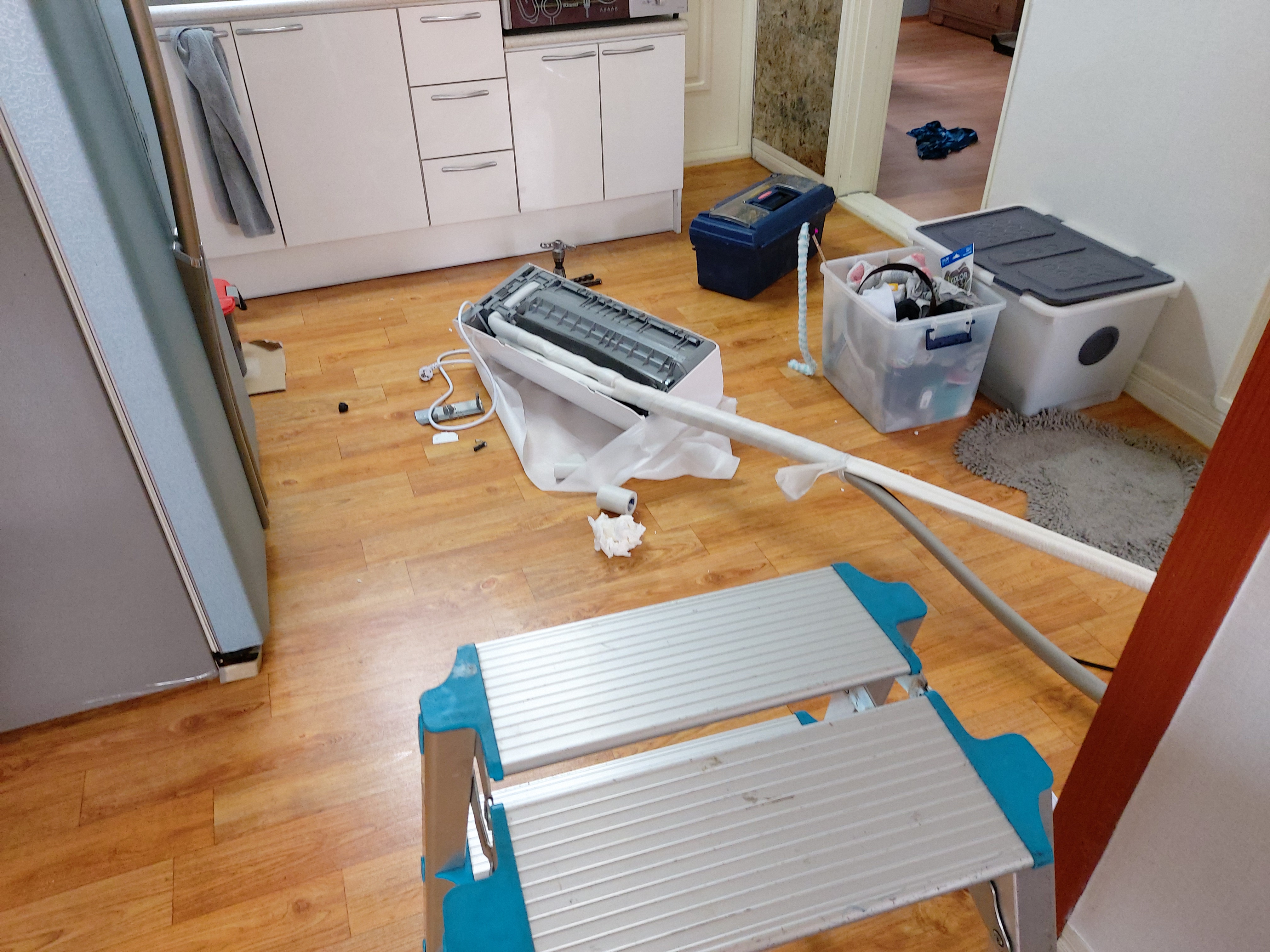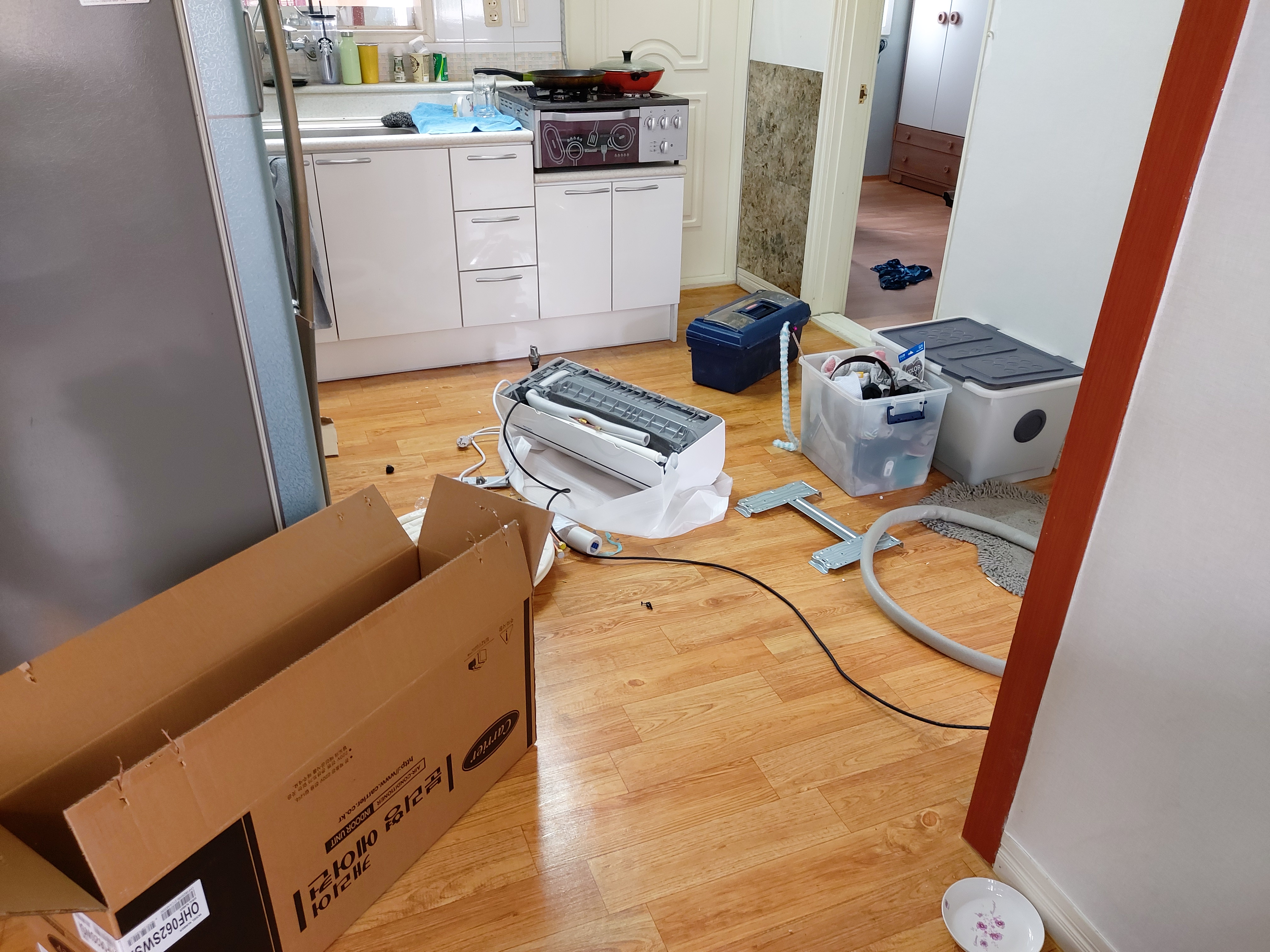 많으셨습니다 에어컨 박스를 뜯어 에어컨과